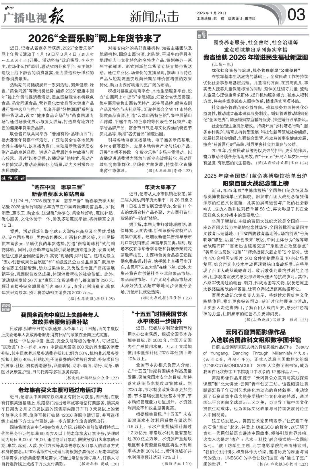 2026年,全省民政系统将围绕“普惠可及”持续发力。一方面,完善老龄工作体制机制,编制实施山西省老龄事业和养老服务…“十五五”发展规划,充分发挥各级老龄委统筹协调作用,更好保障老年人权益、发展银发经济△▪、丰富老年人精神文化生活,着力打造全国老年人旅居康养目的地△•。另一方面◁▪▼,以贯彻落实《山西省深化养老服务改革发展的若干举措》为抓手,全面加强县、乡、村三级养老服务网络建设。