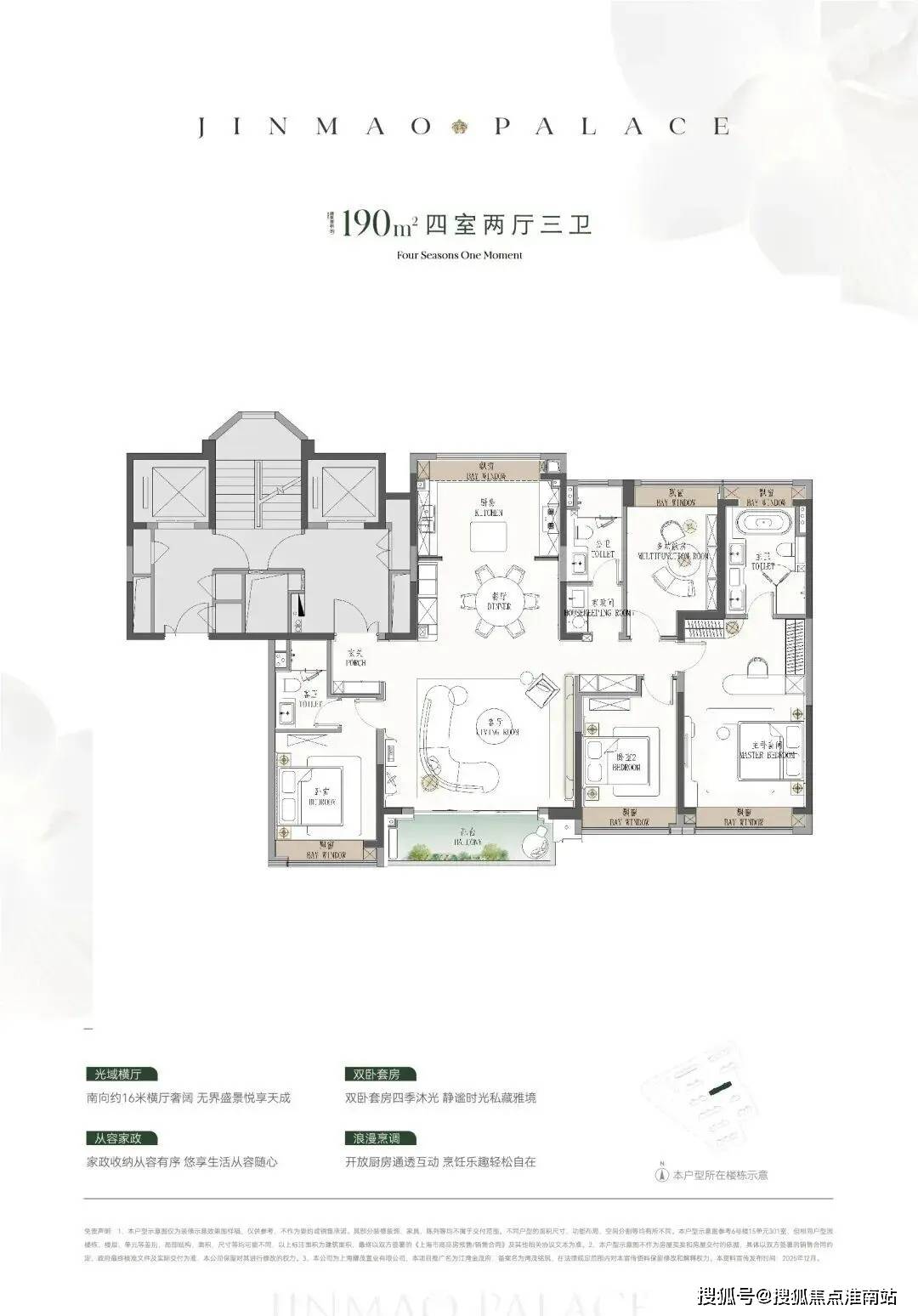 ● 建面约190㎡4房:楼王位置的顶奢大平层,同价位段在杨浦只能买到约120㎡3房!